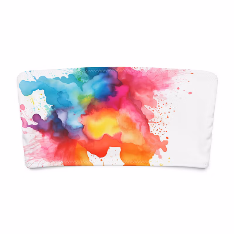 Bandeau bikinitop, i regnbågens färger. Helfodrad bikinitop med brett band runtom.