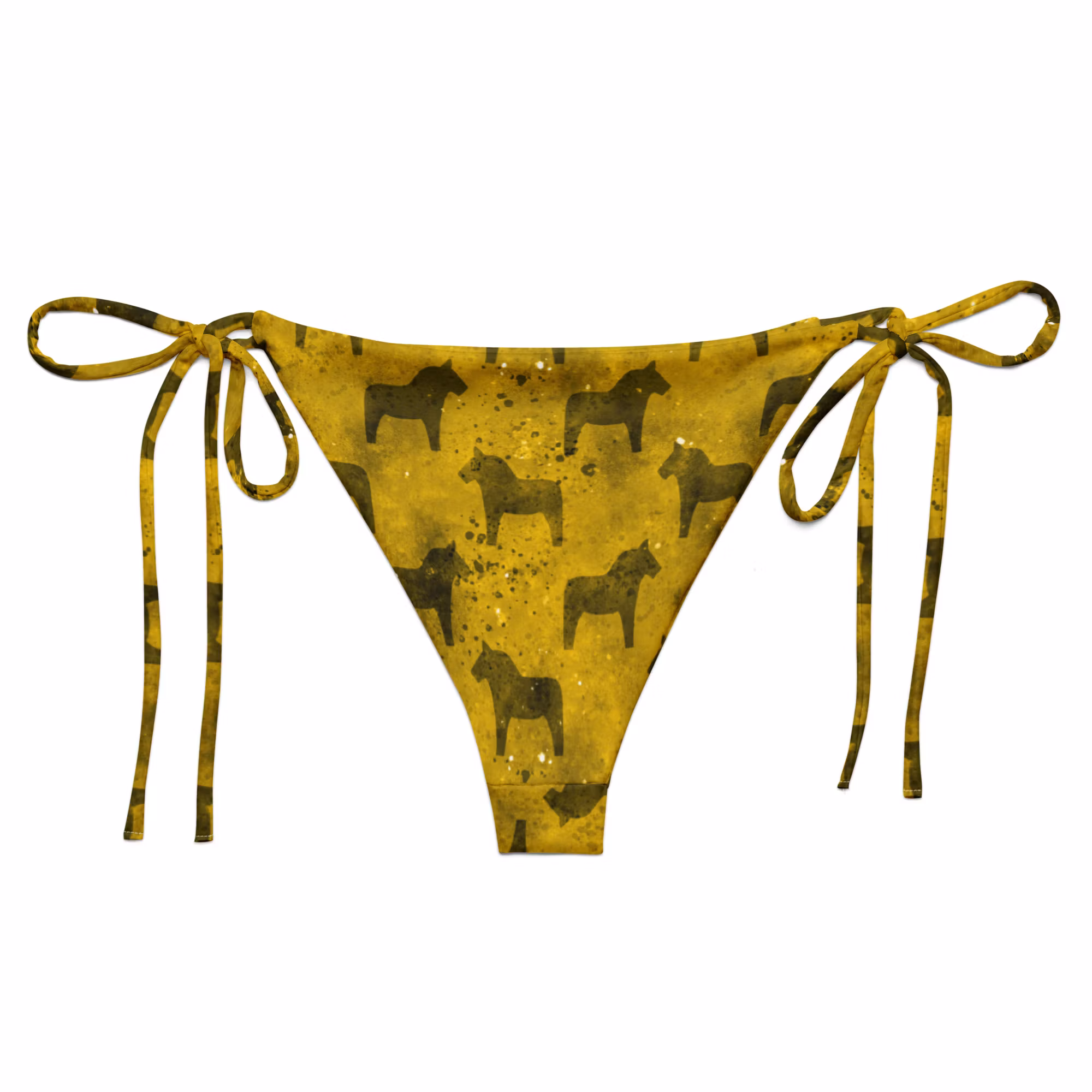 Gul trekantsbikini underdel med mönster av dalahästar.