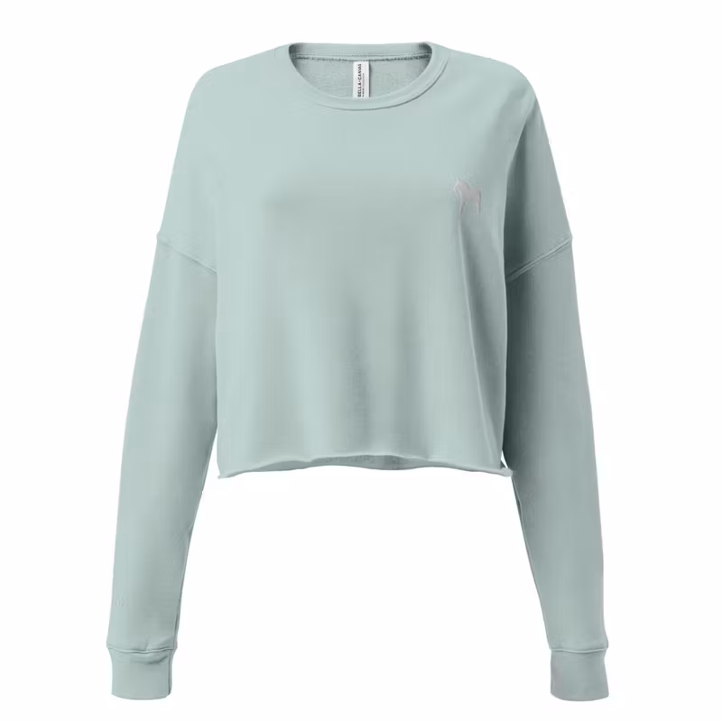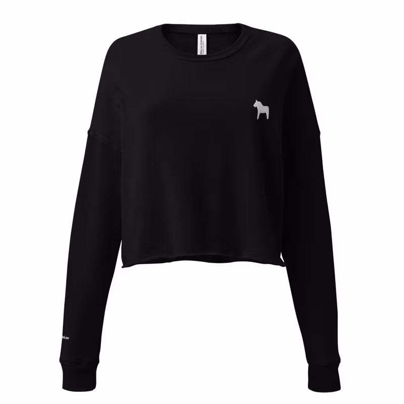 Supermjuk croppad sweatshirt med en liten broderad dalahäst på vänster bröst samt broderad logo på höger ärmslut.